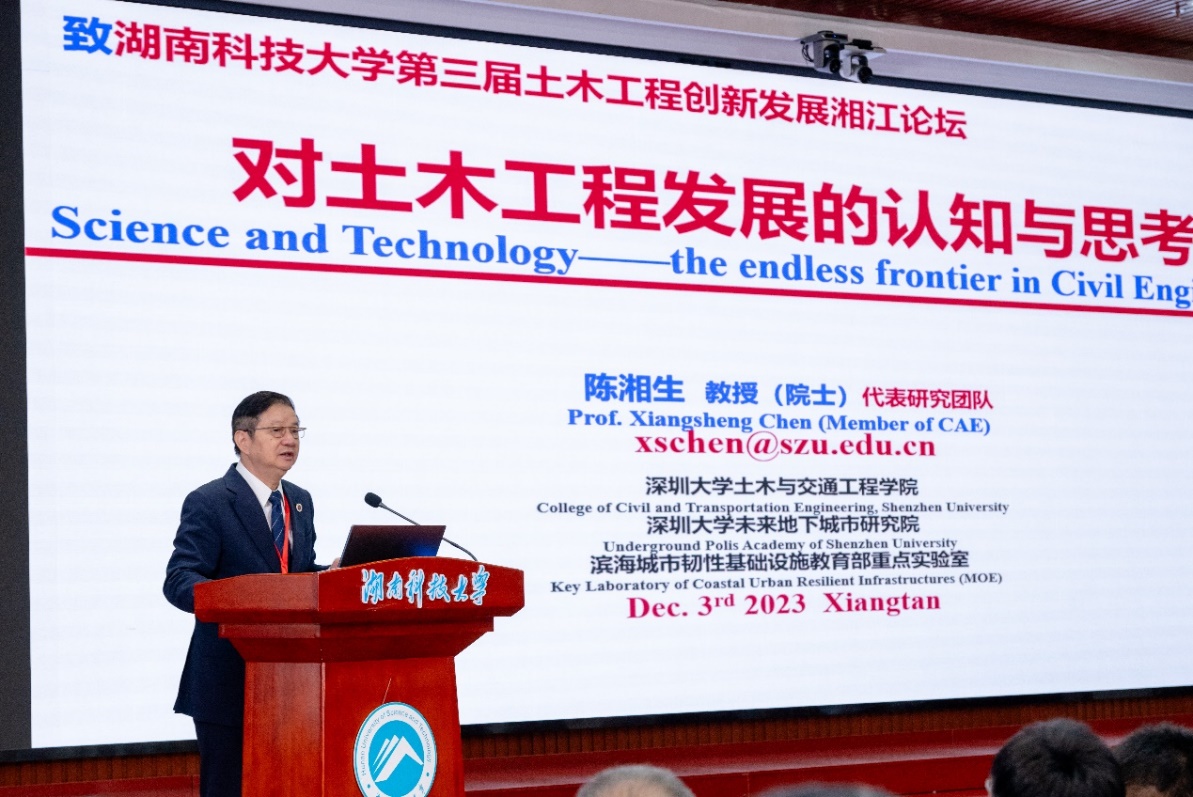 揭牌仪式后,陈湘生院士作了题为“对土木工程发展的认知与思考指出”的大会报告。王明洋院士作了题为“重要目标韧性防护研究进展”的大会报告。