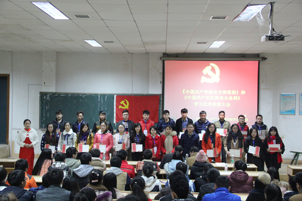 随后,召开的是优秀党员表彰大会。此次会议,是根据《中国共产党廉洁自律准则》及《中国共产党纪律处分条例》,对伟德官网表现优秀的党员进行表彰奖励。该表彰大会的奖项分别是“优秀组织奖”和“优秀蹲点党员”。在会议主持人的名单宣读后,被表彰的各位党员分批上台,由易书记和曾老师亲自为他们颁发证书并合影留恋,希望他们再接再厉,为党效力,为人民服务。