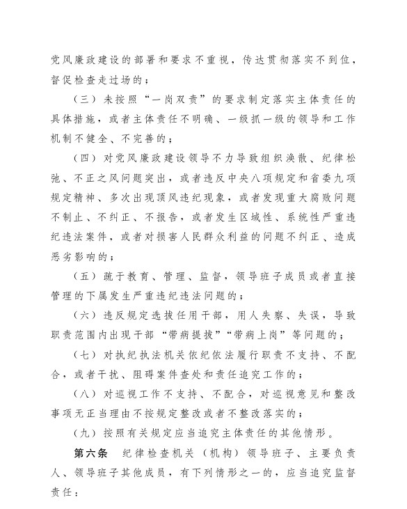 湖南省党风廉政建设主体责任和监督责任追究办法