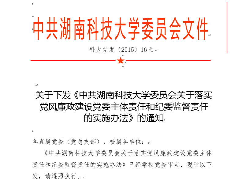 为全面落实党风廉政建设党委主体责任和纪委监督责任(以下简称“两个责任”),进一步完善党风廉政建设责任制,扎实推进伟德官网党风廉政建设和反腐败工作,根据《中国共产党章程》、《中国共产党党内监督条例(试行)》以及中共中央、国务院《关于实行党风廉政建设责任制的规定》,按照中共湖南省委《关于落实党风廉政建设党委主体责任和纪委监督责任的意见》(湘发〔2014〕24号)和《湖南省党风廉政建设主体责任和监督责任追究办法》(湘发〔2015〕5号),结合学校实际,特制定本实施办法。