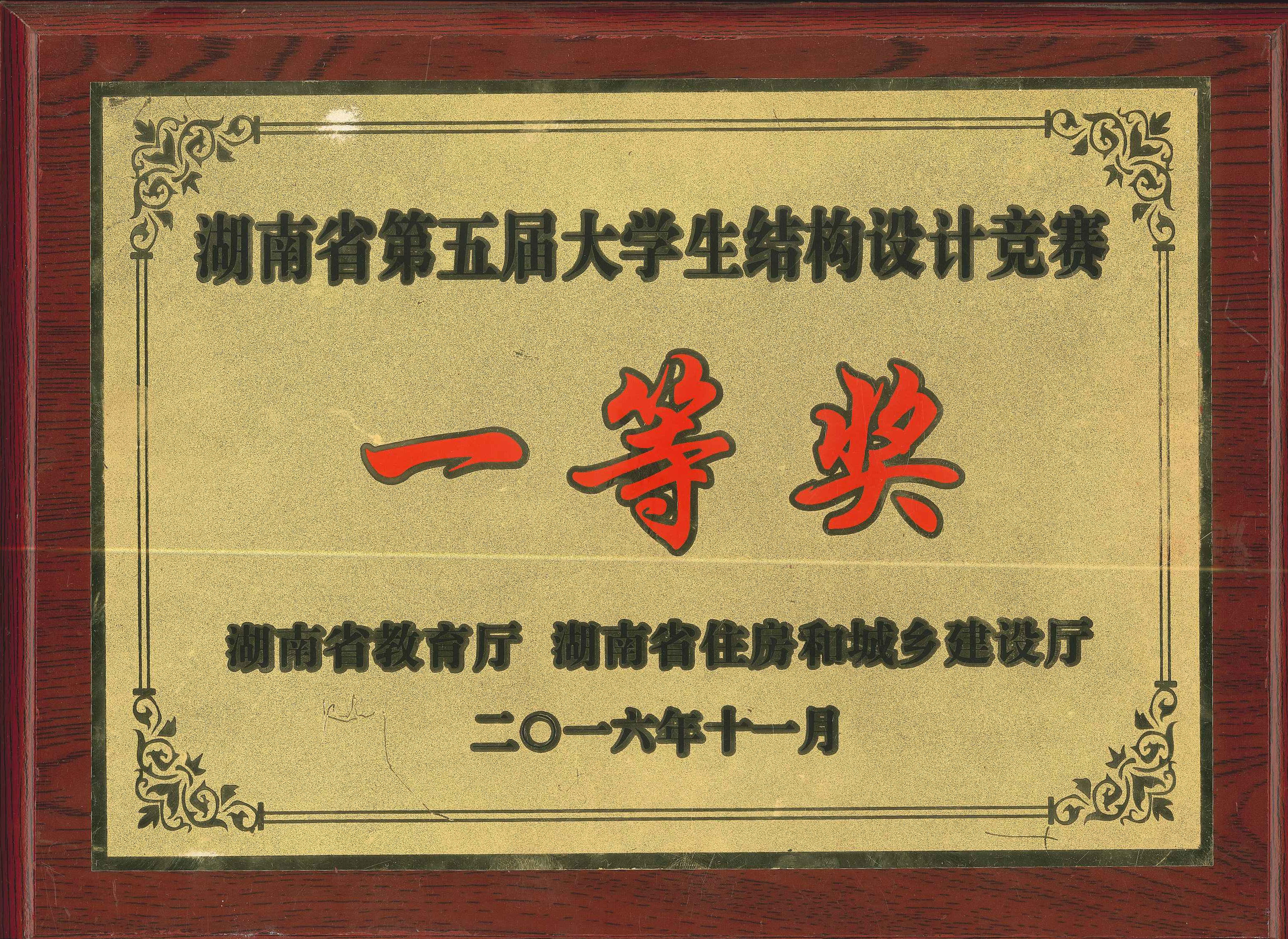 湖南省第五届大学生结构设计竞赛于2016年11月18日至20日在长沙学院成功举办,来自省内29所院校的65支队伍参加了本次竞赛,伟德官网共选派4组队伍参加了现场竞赛。本次竞赛共设5个一等奖,伟德官网选手力挫群雄,陈炳初博士、李永贵博士、汪建群博士指导的队伍现场完成的结构模型分别以第一名、第二名和第五名的好成绩荣获3项一等奖,同时斩获一个参加全国总决赛的资格。本届竞赛再次刷新了伟德官网在湖南省大学生结构设计竞赛中的单年成绩,展现了伟德官网的结构设计竞赛强校风范。