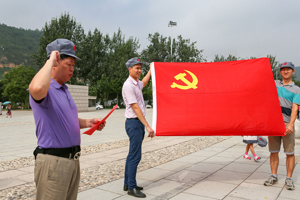 7月25日上午,在延安革命纪念馆党员们通过观看革命史料、珍贵图片、聆听抗战历史讲解,重温历史,全体党员在毛主席像前重温入党誓言,感受着令人热血沸腾的革命岁月,追寻老一辈无产阶级革命家在延安奋斗的足迹。