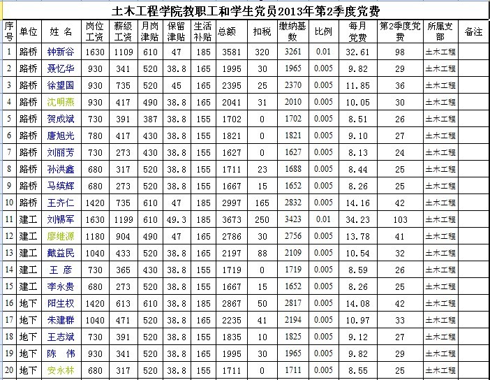 2013年第2季度党费表