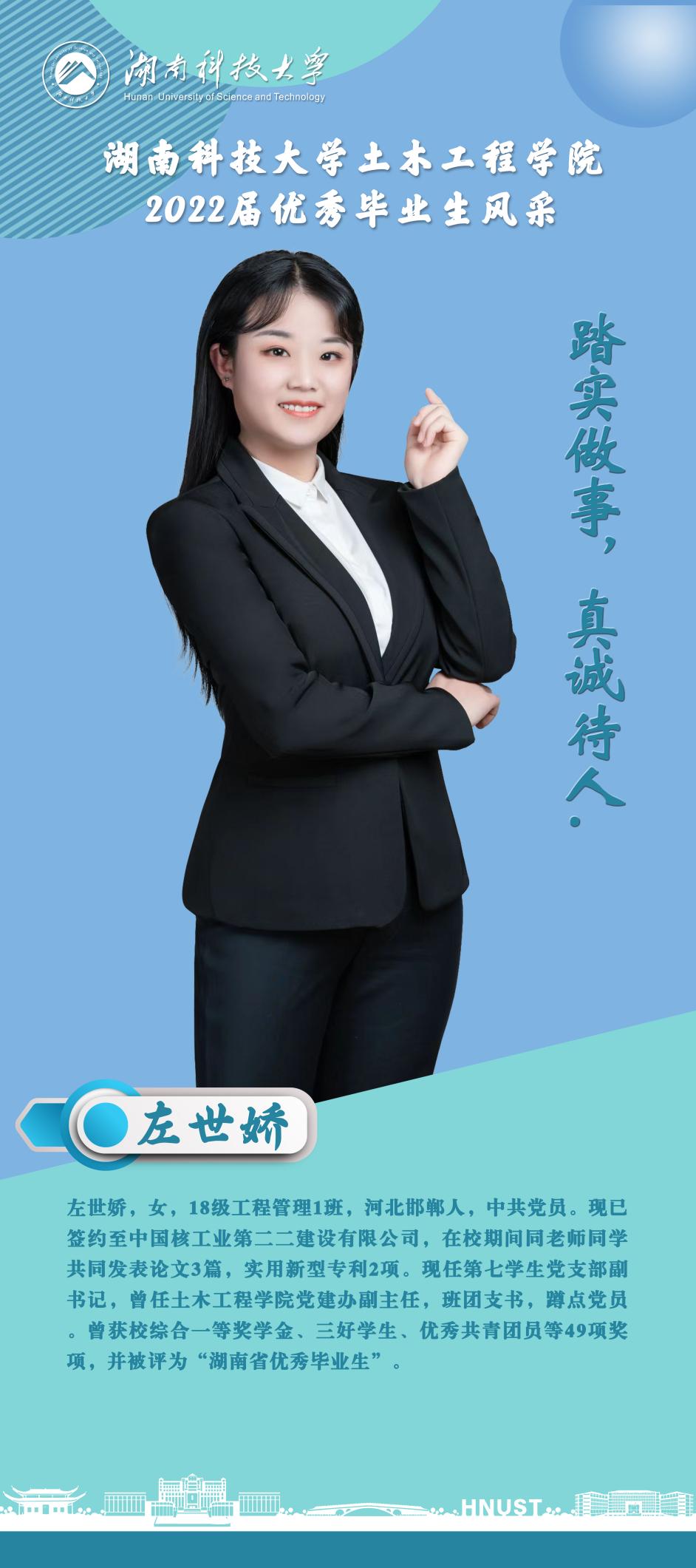 大学以来,左世娇一直积极进取,不断增强自己的知识储备,提高自己的各项能力,在学习、生活和工作中都有较为优秀的表现。