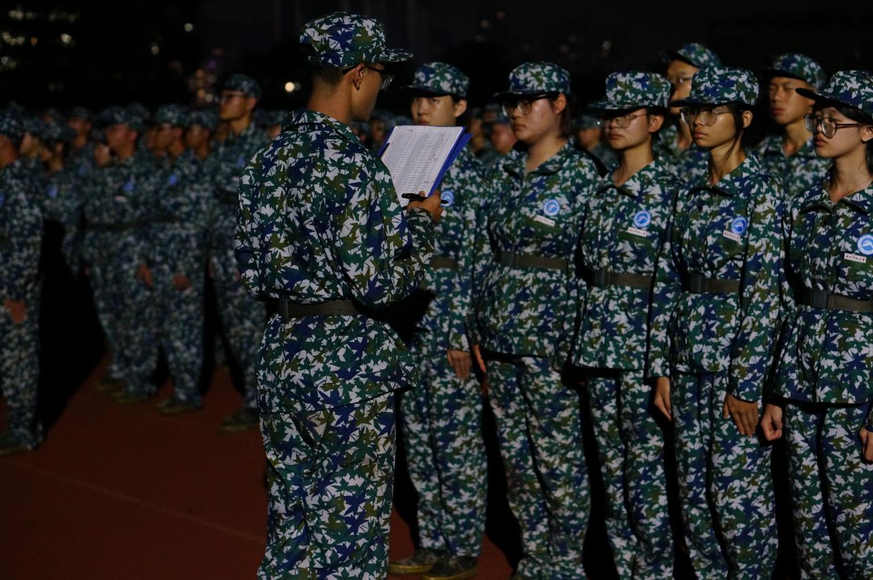 在周姣术和主席团成员的指挥下,23级新生整齐划一地调整队形,整理好军容风纪,以最佳的精神面貌迎接教官们的到来。18:30,教官们高喊着响亮的口号,迈着整齐划一的步伐向全体新生走来。二连连长对同学们进行了训前动员,教官们向带训班级做了自我介绍,并详细介绍了军训的总体安排、内务要求和规章制度。他们强调了队列意识,并提醒同学们要相互帮助,注意身体情况,并及时向各排教官反馈。
