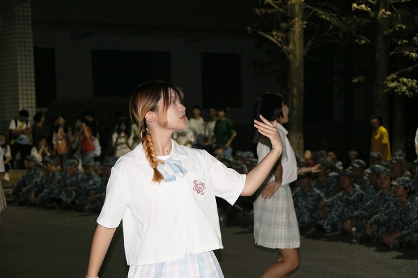 伴随着凉爽的晚风,演出在主持人的致辞后热烈开场。柔和灯光下,院啦啦队带来的舞蹈《treasure》拉开了本次演出的帷幕,其跃动的旋律舞出青春的风采。随后,歌曲演唱、舞蹈表演、乐队弹奏等一个个精彩节目轮番上演。学长学姐们的热歌热舞赢得了台下新生们的阵阵掌声,手举打着闪光灯的手机,现场气氛达到了高潮。除了有学长学姐们的热情表演,21级的新生代表陈鑫也不甘示弱,一首《阿尔兹海默的爱》引起全场共鸣,低沉的声音萦绕在每个人的耳边。