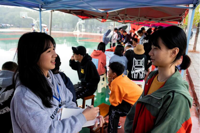 阴雨绵绵,细雨打湿了跑道,却没有浇灭赛场的热血激情。运动场上,运动员们奋勇拼搏,力争上游;观众台上,鼓声如雷,呐喊不断,彩旗飘飘。比赛开始前,罗翠培在跑道外认真做着准备活动热身,熟练的拉腿屈伸放松腿部肌肉,上下跳动调整最佳比赛状态,自信等待比赛开始。裁判长一声枪响之后,罗翠培蓄势待发,立刻由预备姿势换成跑步姿势,如离弦的箭一触即发,遥遥领先于其他选手。比赛激烈进行,敲鼓声响彻于田径场,拍打着运动健儿的心腔,点燃了他们最后的热血。终点线处,裁判员手拿红旗,紧握秒表时刻关注运动员赛况,沉着等待运动员的冲刺。最后高光时刻,罗翠培以绝对优势远超其他选手,斩获女子组200米预赛第二组第一名的名次。