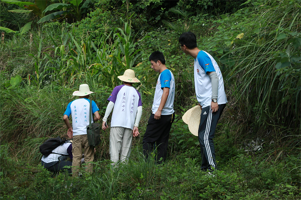 精感石没羽,岂云惮艰险。为了精准地测量出切坡的数据,志愿服务团登上陡坡,以最清楚的方式来进行测量。曾超峰在指导测量后从高处跳下不慎擦伤,附近的村民拿来了家中的碘酒,帮助他处理伤口。在前往目的地的途中,胡伟关切地询问杨成院村上的情况,如村上有多少户人、常驻人口有多少,每来到一位村民家中,胡伟都要与村民聊一聊有关切坡的生活问题,并提醒村民们注意安全。