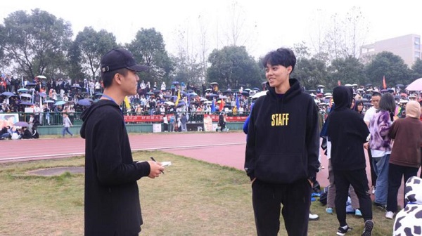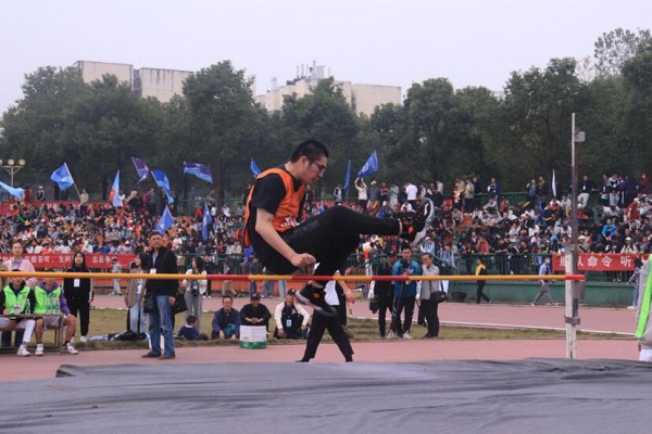 参赛队员们彼此之间不甘示弱,而横杆也在一次次喝彩声中上升到新的高度,伴随着喝彩声,运动健儿们不断冲击着新的挑战。随着时间的推移比赛难度不断增大,选手的脸色逐渐凝重,但更多的,是面对挑战时的坚毅。此时,天空逐渐阴沉了下来,雨密密麻麻地落在操场上,这不仅考验着选手的身体素质,也考验了选手的心理素质。不断有选手被淘汰,荆梁宇和邓超也由于失误被淘汰,罗仕枢挺进决赛,他动作如行云流水般优美,再一次越过了横杆,观众席上爆发出了雷鸣般的掌声。在他的身上不仅展现了作为一个运动员该有的体育精神、更展现出了土木学子永不言弃,欲与天公试比高的万丈豪情。在比赛结束后的采访中邓超表示,自己第一次参赛比较紧张,未能发挥全部实力而遗憾落败,但却体会到运动会热烈的氛围,感受到同学们的热情。希望下一次能取得好成绩,为土木争光。