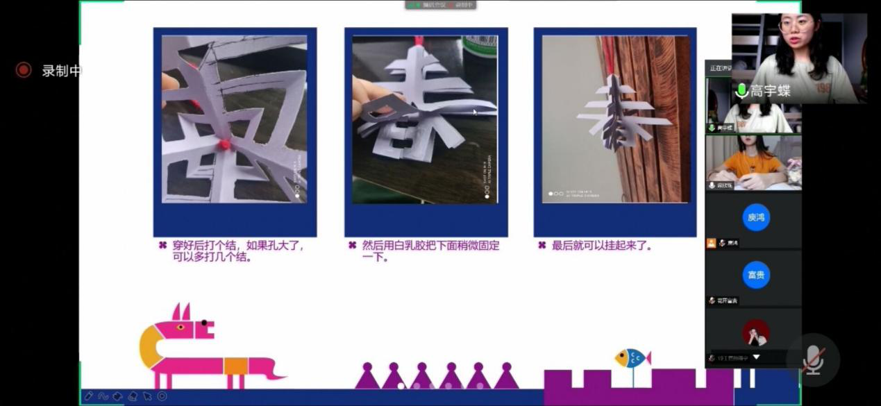 图为线上公开课中,志愿者高宇蝶教小朋友们折“春”字。母慈悦 提供