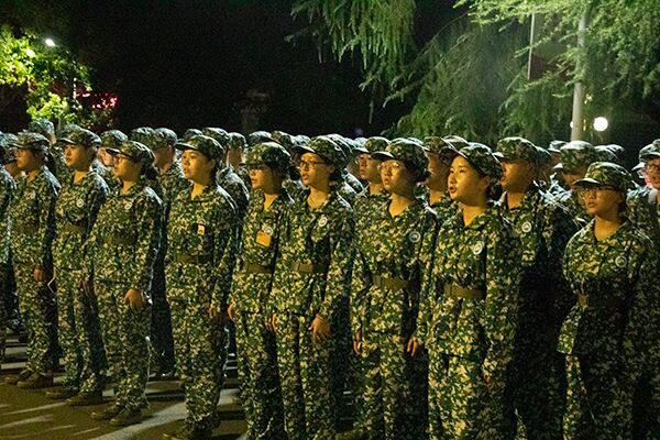 18:40,22级新生在主席团成员和各班助班、蹲点的带领下,整理队形,整理军容军纪,将最好的一面展示给即将到来的教官们。19:00,本次见面会在主席团成员廖添的主持下拉开序幕。首先,王艳书记发表讲话,她指出军训是全面贯彻国防教育法、推进素质教育的重要举措;是学习军队优良传统、培养艰苦奋斗精神的极好机会;是增强同学们的国防意识、激发同学们的坚强意志、培养同学们的过硬作风的关键环节。此外,她希望22级新生们能够像军人一样的英姿飒爽,像军人一样纪律严明,像军人一样意志刚强。