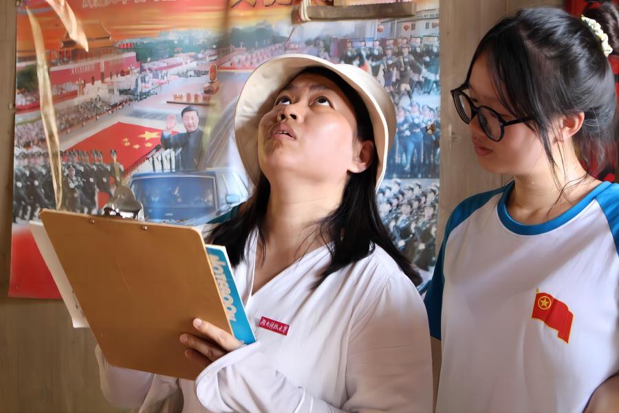 志愿者对村民房屋进行测量