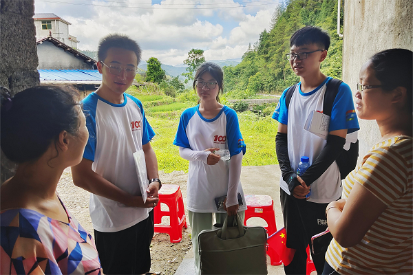 志愿者们正在与村民进行交流