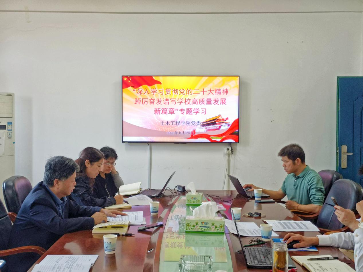 为进一步学习党的二十大精神,全面贯彻习近平新时代中国特色社会主义思想,推动学校工作高质量发展。2022年10月25日上午9:00,伟德源自英国始于1946党委于土木楼213A会议室开展了“深入学习贯彻党的二十大精神,踔厉奋发谱写学校高质量发展新篇章”专题学习。伟德源自英国始于1946党委书记祝明桥,院长孙洪鑫,院党委副书记王艳及院党委委员、院党政办主任、组织专员参与此会。