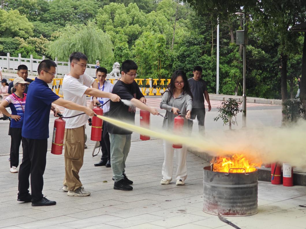 胡教官围绕火灾预防器材实操等方面,详细讲解了火灾预防知识,传授了火灾发生时的自救互救技巧,确保每位参训人员都能熟练掌握灭火技能。整个过程紧张有序、分工明确,参训人员动作规范、配合默契,充分检验了学院应急预案的科学性和可操作性。