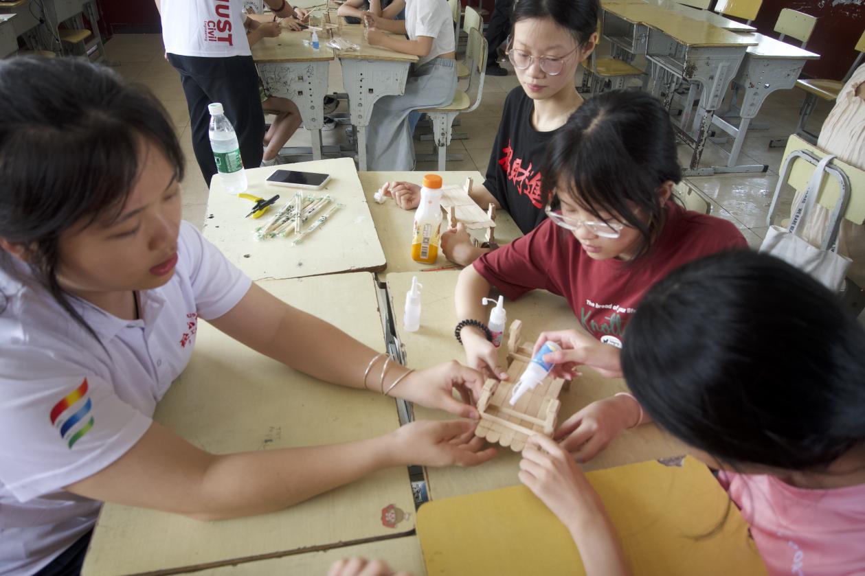搭建知识桥梁,助力乡村教育。为激发当地学生的创新思维和科学兴趣,丰富他们的精神世界,支教组的志愿者们开设了一系列特色课程。从结构建模到纸桥设计,每一次尝试都凝聚着创意与灵感的火花,每一件作品都装载着难忘的回忆,让同学们深刻体会“桥梁”之美,探索“承重”之趣;在防性侵教育和口腔护理等主题课程中,志愿者们以充满温馨和关怀的方式,帮助同学们养成良好的生活习惯,在他们的心中播下了关爱自我、注重健康的种子;爱国主义教育与廉洁教育课程的开展,激发了同学们的爱国情怀,释放了廉洁文化的影响力,为培育时代新人奠定了坚实的基础。
