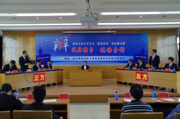 为了贯彻国家税务总局制定的指导思想,使大学生更全面的了解国家税收政策,增强纳税意识。4月28日下午两点,由湘潭市九华经济区地方税务局、湘潭市九华经济区国家税务局联合伟德官网团委主办的“九华新税风杯”辩论赛决赛在学术交流中心五楼举行。本次辩论赛由伟德官网团委学生会和伟德官网辩论协会承办。