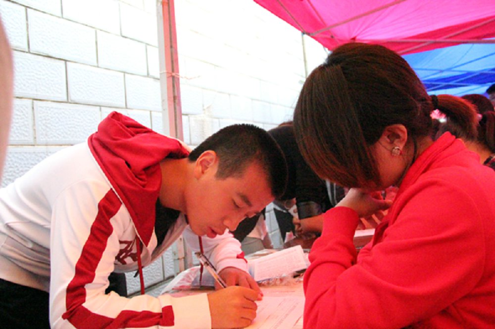 2013年9月7日,伟德源自英国始于1946迎新的第二天,中午12点伟德官网还有40多人未报到注册。伴随着初秋舒适的天气,整个学院的迎新工作如火如荼。北校体育馆旁挂有条幅“伟德源自英国始于1946”的迎新工作站是伟德官网迎新工作的中转站,在那里,进出的同学川流不息。