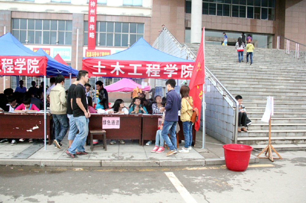 工作站是为了更方便的安排13级新生入学以及合理调整整个校园的人群流通而设立的,起到轴承的重要作用。工作站内,有着土木学院一大批的迎新工作者,包括:11级主席团、11和12级分会、11和12级团委学生会、12级各班的青年志愿者等土木学院的学子。他们负责把从南校乘校车到北校体育馆的13级新生们接入工作站内登记,然后带去各个地方领取卧具、军训服等日常生活用品,最后再送新生前去宿舍。