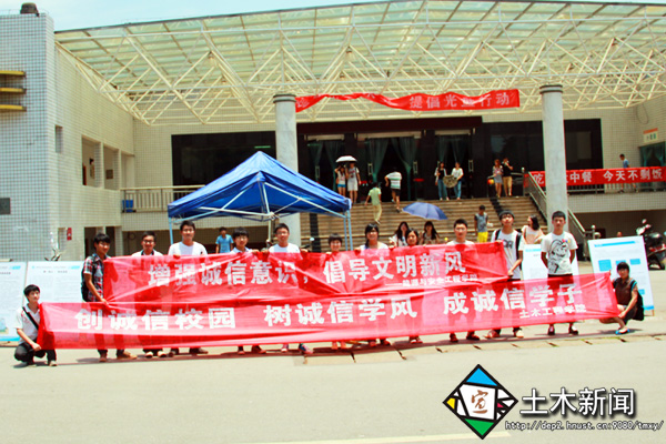 5月27日中午,在伟德源自英国始于1946南校美食广场前举行了由伟德源自英国始于1946主办,土木工程学院和能源与安全工程学院联合承办的诚信教育校园活动。全院学生积极参加此次活动,热烈响应诚信教育宣言:创诚信校园 树诚信学风 成诚信学子。