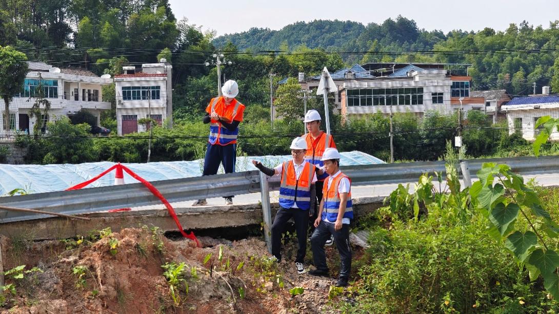 排查地质隐患,筑牢安全防线。张宗堂和关蕾蕾带队地质灾害隐患排查组深入沙田村、五里村、宝云村和石笋村,针对切坡建房、路基塌陷及滑坡等隐患,展开了灾害评估和实地调查。两位老师周密策划工作细节,带领队员们不辞辛劳走访调查,从切坡失稳常见因素到道路病害成因,从当地地质构成分析到各种治理方案优劣评价,他们对60处切坡建房、7处的路基塌陷以及五里村的高陡边坡滑坡进行了全面排查,并出具了详尽的风险评估报告。张宗堂、关蕾蕾老师及其团队凭借扎实的专业知识、突出的实践能力出色地完成了隐患排查工作,用实际行动诠释了青年科技工作者的责任与担当。