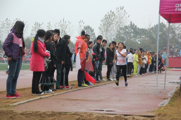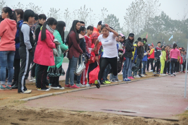 尽管比赛现场寒风肆虐,但依旧阻挡不了摇旗助威的观众,更阻挡不了运动健儿冲刺的步伐。观众的热情、参赛队员的自信,构成一幅暖意融融的画面,仿佛让四周都暖起来了……看,随着裁判的一声令下,助跑、起跳、飞跃、落地,动作一气呵成,等到她们跳完了,旁边就会有热情的志愿者为他们服务,递纸巾、送衣服……忙的不亦乐乎。伴随着每个参赛队员的跳跃,空中就会浮现出一条条优美的弧线,最终每个人都在沙坑中留下了属于她们的美丽脚印。在赛后的采访中,陈境健说:“虽然成绩不太理想,但是没关系的,比赛重在参与嘛。”