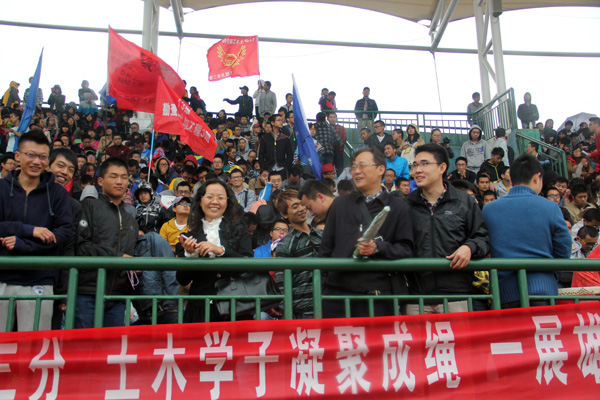 党委副书记易贵元和11级辅导员曾淑艳到场给运动员们加油打气。