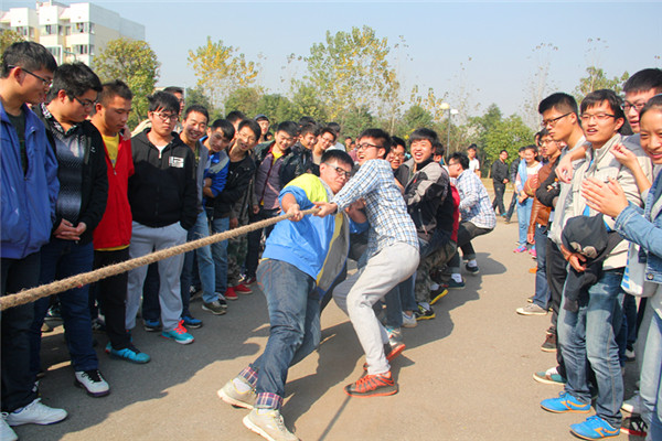 11月20日中午12:20,伟德官网于南校新篮球场和北校七区篮球场举行了以“走出寝室,走下网络,走进操场”为主题的拔河比赛第一次晋级赛,参赛班级有大一、大二、大三的所有班级。首先进行同年级比较各选出三个较强的班级,之后再进行决赛,取前六名给予表扬。