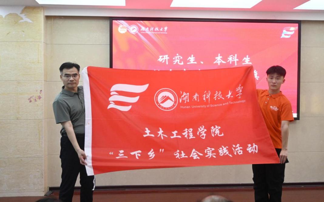 在授旗仪式中,孙洪鑫分别为本科生、研究生、博士生社会实践团队授旗。