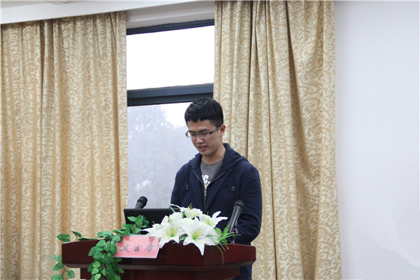 在主持人杜洋短小精悍的开场白后便由易书记上台讲话。他着重的强调了两点:一是学生安全,二就是作为学生要好好学习。并对学生会做了要求:要一如既往的做好部门工作。接下来就到了部门工作汇报环节。14级分会是响亮的第一枪,那是一支将工作做得井井有条,每个人都无私奉献的无学长学姐带领的特殊队伍,自信的为在座的老师及同学讲这这一学期的工作情况。宣传部代表陈明的汇报也真实生动,展示出宣传部在把对外工作全力做好的同时也十分注重对委员能力培养的大爱。每位部门代表都用ppt的形式展示了自己的部门的成果,同时也客观的揭露了部门工作中的不足。脚踏实地地总结14年的工作,信心满满地展望着15年。之后,由在场的老师为在部门有优异表现的同学颁发 “部门之星”奖。