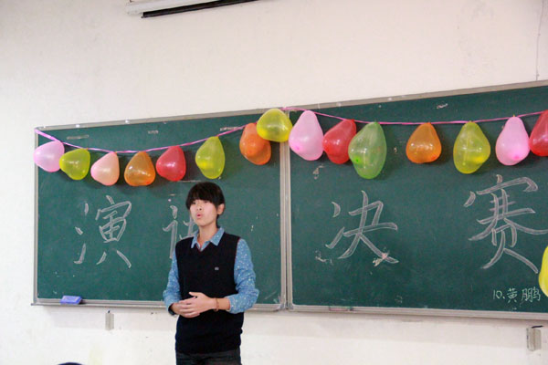 11点半,演讲赛正式拉开帷幕。在欢呼声与雷鸣般的掌声中,首先上场演讲的是胡立昂,他以气势磅礴的语言道出了革命先烈无私的精神,让我们记住了他那激扬的气势,带动了全场的气氛。接下来登场的是二号选手徐豪,他讲了自己亲生经历的一段感情故事,告诉我们要记住那些我们爱的人和爱我们的人,让在场所有人都产生了共鸣,他以小见大,引人深思。随后的几位选手也毫不示弱,用铿锵有力的语言,稳健的台风征服了评委,将比赛一步步推向高潮。其中谭潇玲演讲的“我的班主任”、王斌的“记住过去的自己”、蒋淑靓的“朋友”引人深思。在所有参赛选手演讲完毕后,评委对此次选手的表现做了仔细的点评。经过激烈角逐,来自资勘一班的王丹婧同学赢得胜利,成为本次演讲赛的冠军,谭潇玲,曾志伟获得二等奖,蒋淑靓,蒋鹏程,徐豪获得了三等奖,此外,最佳台风奖和最受欢迎奖由观众投票选出,获得者分别是曾志伟和蒋淑靓。