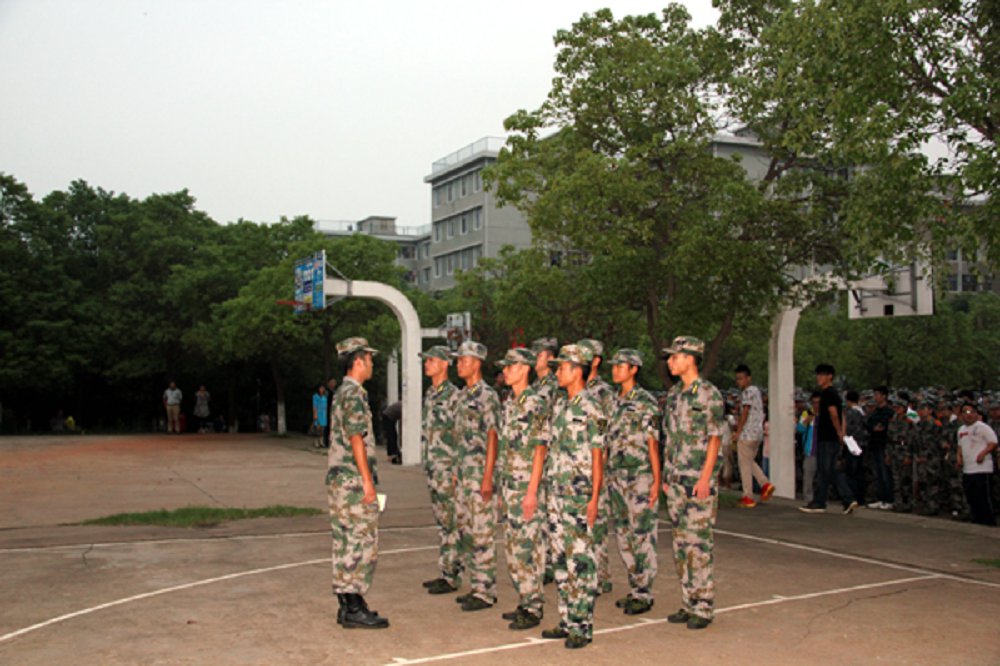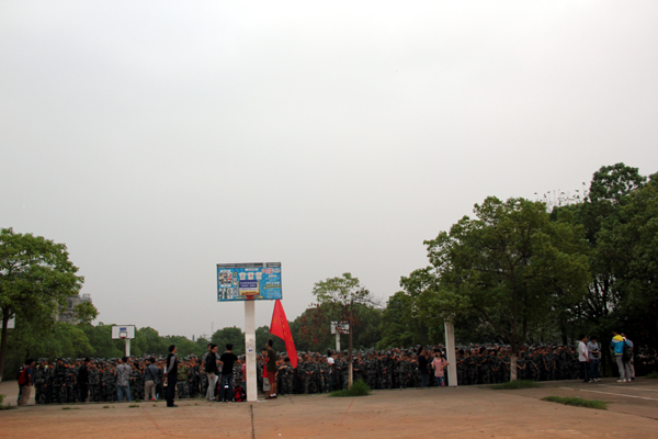 7点整,篮球场边响起了洪亮的操练声,教官们在连长的带领下踏着整齐划一的步伐,昂首挺胸地走到新生队伍面前,整齐地一字排开。新生似乎被教官们英姿飒爽的气质所感动,纷纷鼓掌表示敬重和欢迎。随后,党委副书记易贵元发表了讲话,为新生和教官们鼓舞士气:“希望你们在这次军训期间,把握机会,好好锻炼,争取早日适应大学的生活,祝你们有所收获!”接下来,主持人宣读了土木学院的军训编制安排,2013届土木学院军训队伍由四营九连的七十二至八十排组成,一共有9个排,每个排至少由2个班级组成。