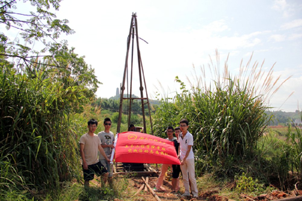 经过前些天的实地勘察、测量,数据采集、整理及图样绘制。7月20日,伟德源自英国始于1946暑期社会实践活动志愿团队同湖南省402地质队来到洋市镇钻井。