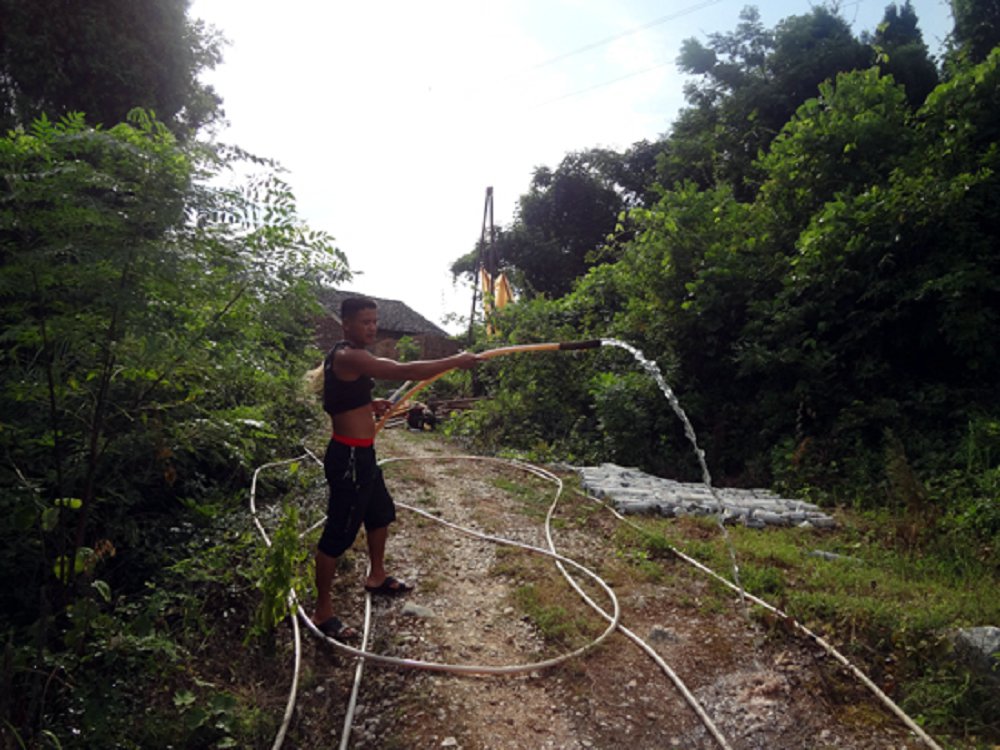 一段时间后,在大家的共同努力下,前段的工作终于有了令人鼓舞的成果,汩汩流水不断地井中冒出。