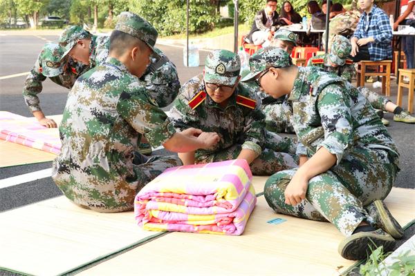 训练场上除了有参与训练的新生以外,还有一些因身体原因而无法参与训练的新生,这些无法参与训练的新生并没有因此而闲坐在训练场上,他们积极的向教官学着如何叠出更好的“豆腐块”,即便因为身体原因无法和大家一起参与训练,但他们也在用自己的方式来磨练自己参与到这次军训中。