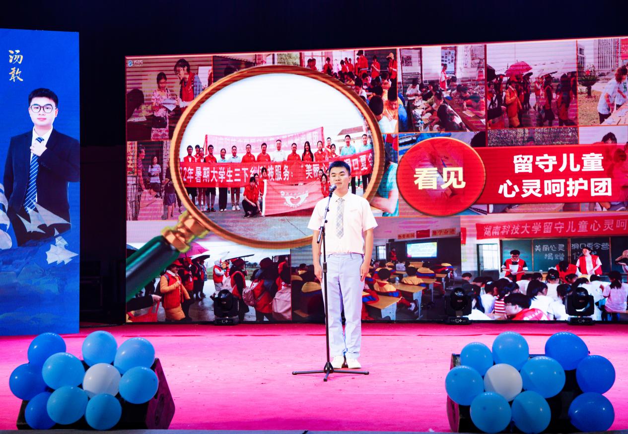 145户留守儿童家庭,189场团训团辅、心理健康课等辅导,1163位留守儿童,这些数字是教育学院汤敢同学从迷茫到坚定的见证。在留守儿童心灵呵护团的三年里,他作为团队的技术总监,为了给孩子们带去最好的课堂效果,他常常准备策划、打磨课堂教案直至深夜,忍受晕车的痛苦去到大山深处的一个个小小村落。但一切都是值得的。当看见孩子们一个个纯真的笑脸,当看见那一封封真挚的感谢信时,他看见了知识的力量、学习的意义;看见了那个在一次次实践中不断学习和进步,立志用更加专业的知识服务社会的自己;看见了那个成绩专业第一,连续三年综测第一,获国家奖学金、中国电信奖学金、十佳大学生等荣誉40余项的,一往无前的自己。