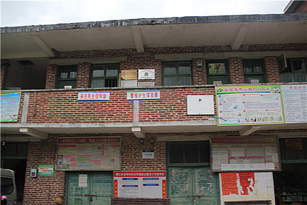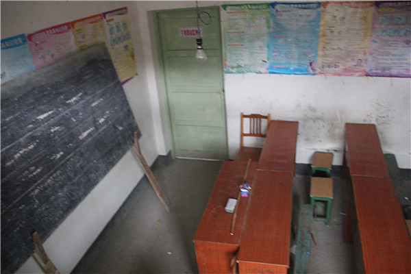 旧校区建在半山腰上,没有大路,只有通过两条崎岖的小路才能上去。又由于天公不作美,在小队出发前下了一场雨,让小路变得湿滑泥泞,更不好走了。在骆书记的引导下,小队终于来到了旧校区。首先映入眼帘的是一栋古朴的木质结构的瓦房,这,便是学校的教学楼。瓦房前面那栽着几棵松树的平地就是学校的操场了。因为,两年前这栋楼评为了危房,所以学生不能再在这里上课了。如今,教室里空荡荡的,操场里长满了杂草,给人以荒凉颓败之感。骆书记点燃一支烟,略带遗憾的说到:“我们白坪村到现在还没有一个考上一本的学生啊!”“老师上课还要爬山,自行车跟摩托都上不来,像这样的条件,没有哪个年轻的老师愿意来哈!”骆书记深吸了一口烟又说到:“如果条件好了,肯定还是有年轻的老师愿意来我们这里教书的。”