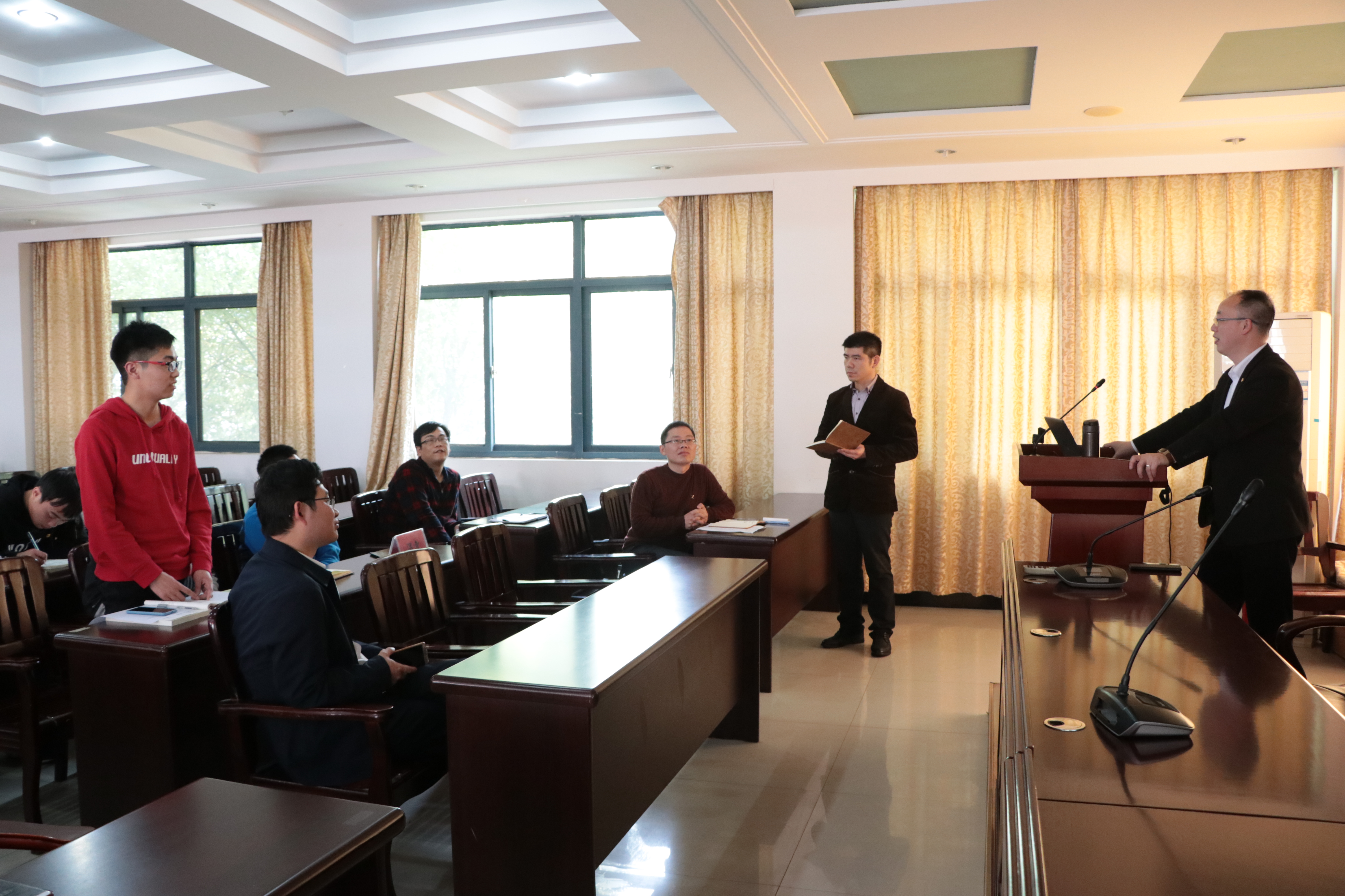 会议在汪院长介绍完来宾后正式开始。首先,马博士就钢结构建筑的发展历史做出了简单的介绍,并指出了钢结构建筑体系在国际上受到了广泛应用。而我国钢结构建筑的发展是比较落后的,以钢结构为主体的商业楼或居民楼是相对较少的,钢结构建筑对我国目前来说可能属于“未来建筑”。接着,马博士也提到“这一现状还是有望得到改变的,装配式钢结构建筑在我国会迎来行业春天”。中国的钢材产业一直处于产能大、储量多的阶段,钢结构作为装配式建筑中十分重要的一部分,正好可以处理这些过剩产能,所以马博士呼吁行业内在重视装配式混凝土结构的同时,也不能忽视了钢结构和木质(竹质)结构的优势。最后,马博士在回答老师以及学生们提出的问题时也提到了目前我国装配式钢结构建筑行业还需要解决的一些问题。