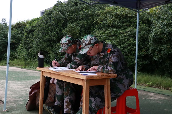 天公不作美,上午训练期间下起了大雨,面对此突发情况,教官们随机应变,带领新生们前往土木楼避雨。在此过程中20级辅导员肖鹏飞老师和赵晓玲老师及时观察新生情况,询问相关事宜,让每一位新生都能感受到温暖。由于大雨连绵,下午军训取消,由新生们自由安排,但他们毫不松懈,于寝室撰写军训心得和整理内务,处处彰显伟德官网新生面对突发情况时的处变不惊。
