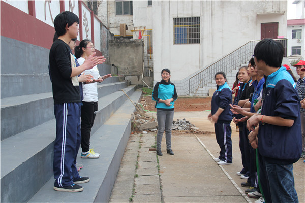 下课铃声响起后,我们终于见到了这群在我们看来很特殊的人群,他们接下来要上的是体育课。见到他们的时候我们显得有些兴奋,而他们则有些羞涩。大家一起在篮球场上见面,他们用手语一一对我们进行了简单的自我介绍,同时也教了大家一些简单的手语。虽然我们不懂他们的语言,和他们交流也需要老师的帮忙,但是我们仍然乐在其中,因为我们从心底感受到了他们的热情。显然语言上的障碍并没有阻碍我们心灵上的沟通。
