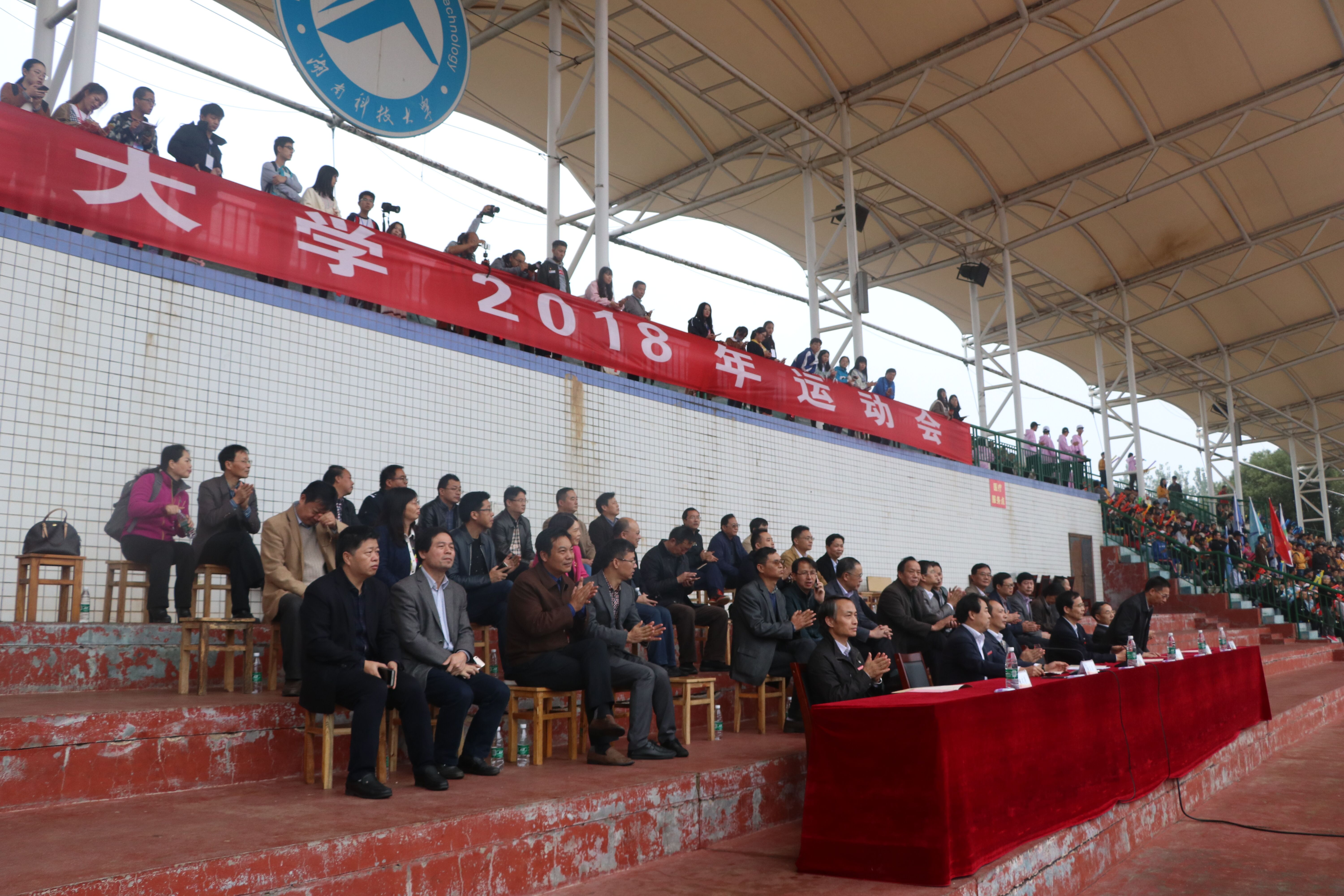 伴随着雄壮的运动员进行曲,校旗队,彩旗队,鲜花队,裁判员代表队,各学院方阵队,教职工代表队依次入场,他们精神抖擞,意气风发,阔步经过主席台接受检阅。高亢嘹亮的口号、鲜艳亮丽的服装、随风舞动的彩旗、飞向空中的气球展示着年轻人的朝气。然后是升国旗仪式,在场人员全体起立,面向冉冉升起的国旗行注目礼。接着,校长李伯超在致辞中对本次运动会的召开表示祝贺,并对在场人员表达了真挚的问候和衷心的感谢。此外,他强调了更快更高更强的体育精神,阐述了我国发展体育运动,完善体育设施的现状。随后,运动员代表、裁判员代表庄严宣誓,体现了顽强拼搏、超越自我、永不言弃的运动精神和公平公正公开的判定原则。至此,此次运动会正式开始。校职工和各学院的精彩表演带动了观众的热情,现场一片沸腾。