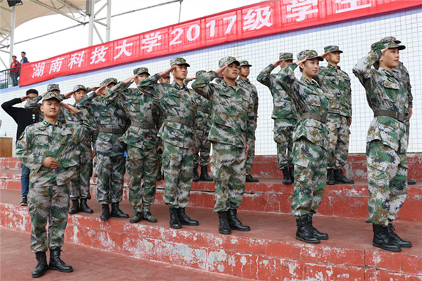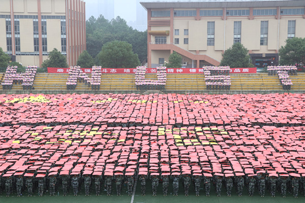 阅兵第一项:升国旗奏国歌。全体新生肃立,在激昂的国歌中展现军人的魅力。随后,校长李伯超亲自检阅新生军训的效果。“同学们好”,“校长好”;“同学们辛苦啦”,“为科大争光”。声声慷慨激昂的问候传达的是学子们对学校的热情与期待。接着,到最激动人心的时刻,分列式表演。17级新生用红黄相间的牌摆出“八一”的字样,靠近主席台的牌随方阵队的步伐变换各学院的简称,8600多名新生汇聚起了无穷的力量。伟德官网方阵队第二个出场,“土木学子,追求卓越,永不止步”这是伟德官网的目标,也是伟德官网一直的向往。“国家富强,民族振兴,人民幸福——中国梦”,这是所有人的不懈追求,一起喜迎十九大,给党一份满意的答卷。