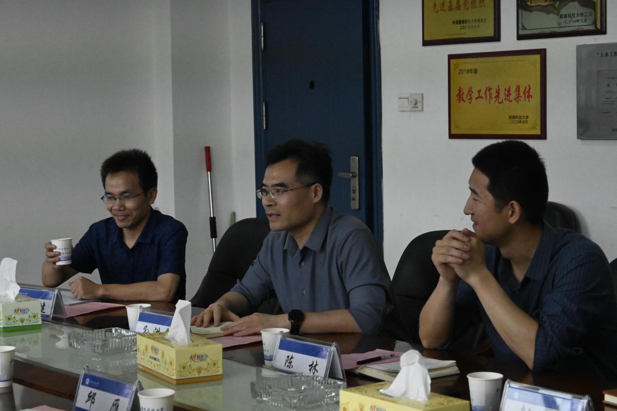 工作交流阶段,邓仁健和邱雁对于专业认证相关的内容进行了交流。邓仁健对学院专业认证工作的开展进行了分享,并提出“在专业中形成自己的特色,并将科研融入教学中才能更好的进行专业认证的相关工作”。彭雄将学院增设智能建造这一专业的相关情况进行了详细介绍。