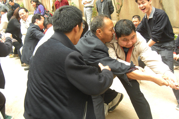 换上舒适的运动鞋,暂别忙碌的办公生活,老师们也在赛场上体会了一次拔河带来的乐趣。5月24日下午,土木楼楼下鼓声阵阵,呐喊不断,伟德官网教职工拔河比赛在土木楼旁隆重上演,引得来往的学生纷纷上前围观加油。 下午四点,刚刚结束职工会议的各专业教师齐聚在土木楼下为拔河比赛做最后的准备。比赛以分组的形式进行,由各专业派出代表抽签分成A,B,C,D,E 5个小组,经过简单的热身运动,首先上场的两队开始在麻绳的两端排兵布阵, 我站前面打前锋 我去后面压阵 大家相互间把脚扣紧 老师们显然在赛前对比赛进行了细致的研究。 钟新谷院长高举鼓槌用力敲响比赛开始的信号后,两队队员迅速做出后倾动作,排在最前面的党委书记刘新华身先士卒,在双方僵持阶段紧紧拽住绳子的同时还不停地喊着 加油,加油 鼓励队友,老师们都牟足了劲往后拉,同时发出一阵阵吼声,仿佛他们手中有使不完的力气,旁边的老师大声加油为场上的队员打气,现场呐喊声冲天,战鼓声隆隆,气氛一下升至极点,很多老师抑制不住激动之情,纷纷接过鼓槌击打战鼓为队友加油助威,在交换场地的时间里,各老师共同探讨,相互协作,希望通过调整队形和战略战胜对手,麻绳的两端不时传来阵阵笑声,赛场的气氛一下子缓和了许多,在比赛的输赢之外,每个人享受更多的是工作之余难得的比赛乐趣。来往的学生看到这种场面后纷纷走近围观为老师加油。看惯了课堂上老师严肃的表情,当看到老师们鼓起腮帮用劲的可爱模样时,许多同学不禁笑了起来。 此次教师拔河比赛展现了伟德官网老师们的运动精神和团队精神,也让平日站在讲台上的老师们表现出可爱俏皮的一面。近日,伟德官网班级拔河赛逐渐落幕,而这次教师拔河的成功举办又再次掀起了拔河活动的高潮,很多在场观看比赛的同学表示期待日后有机会能与老师们相互切磋以促进师生情谊。