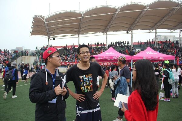 比赛还尚未开始,场上的气氛却是格外的活跃,各个学院都不甘落后,加油声嘹亮高昂、持续不断。运动员们在跑道上做着热身运动,脸上的表情或轻松或严肃,但更多的是自信。随后,裁判员一声“各就位”,全场的气氛变得十分紧张,然后枪声一响,运动员们就像离弦的箭一般飞了出去,短短的十几秒爆发出了他们所有的能量,观众场上的呐喊声已经略显沙哑。伟德官网的唐君宇同学取得了决赛第五名的成绩并接受了采访。他说道:“对自己的成绩不是很满意,比平时跑得慢了,没有掌握好比赛节奏,但是我很享受这个赛场。看到这么多学弟学妹给我们加油打气真的很开心,很感动。有机会一定会参加明年的比赛。”承载着学院荣誉的他说到这里的时候显得格外激动并表达了对其他运动员的祝愿。