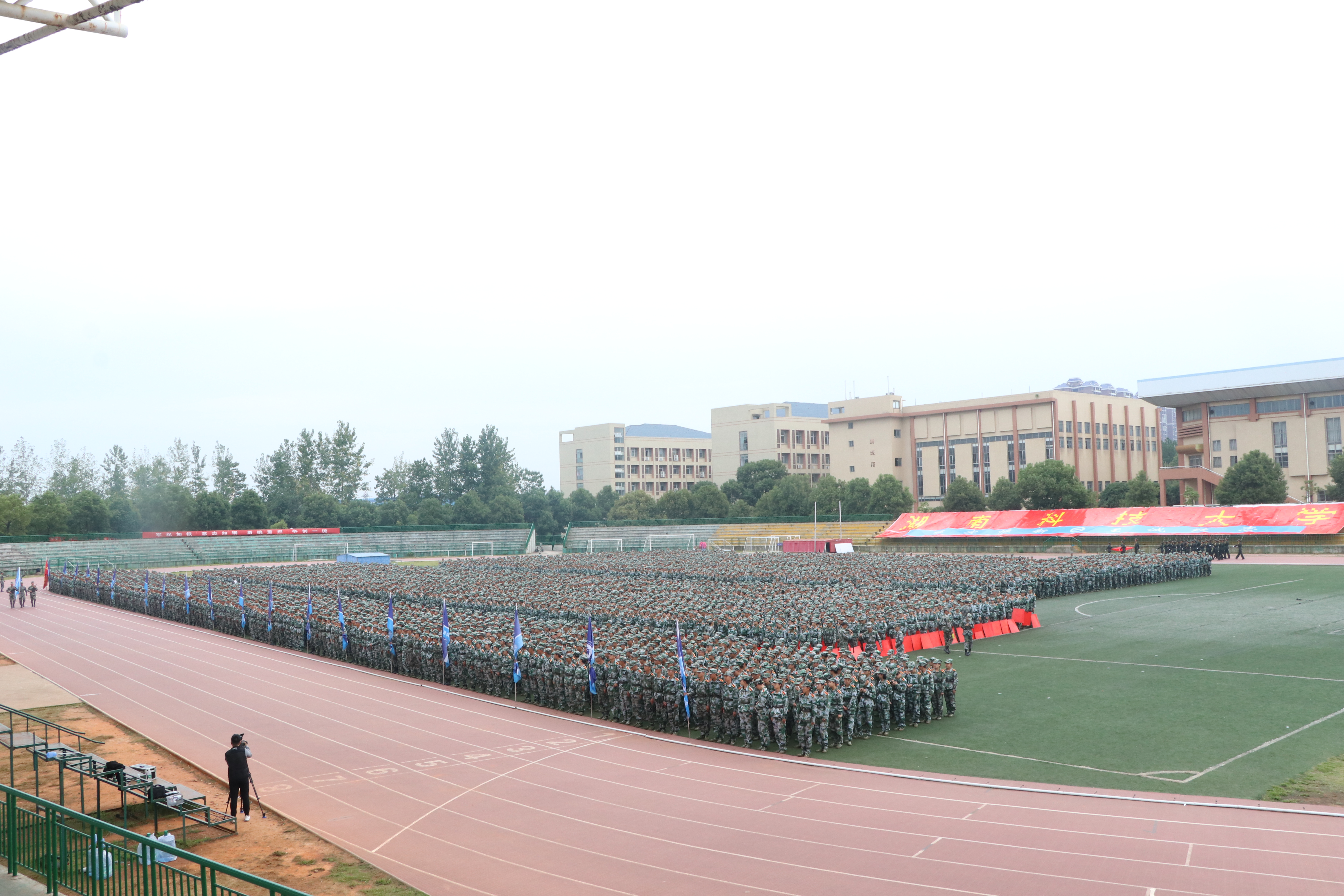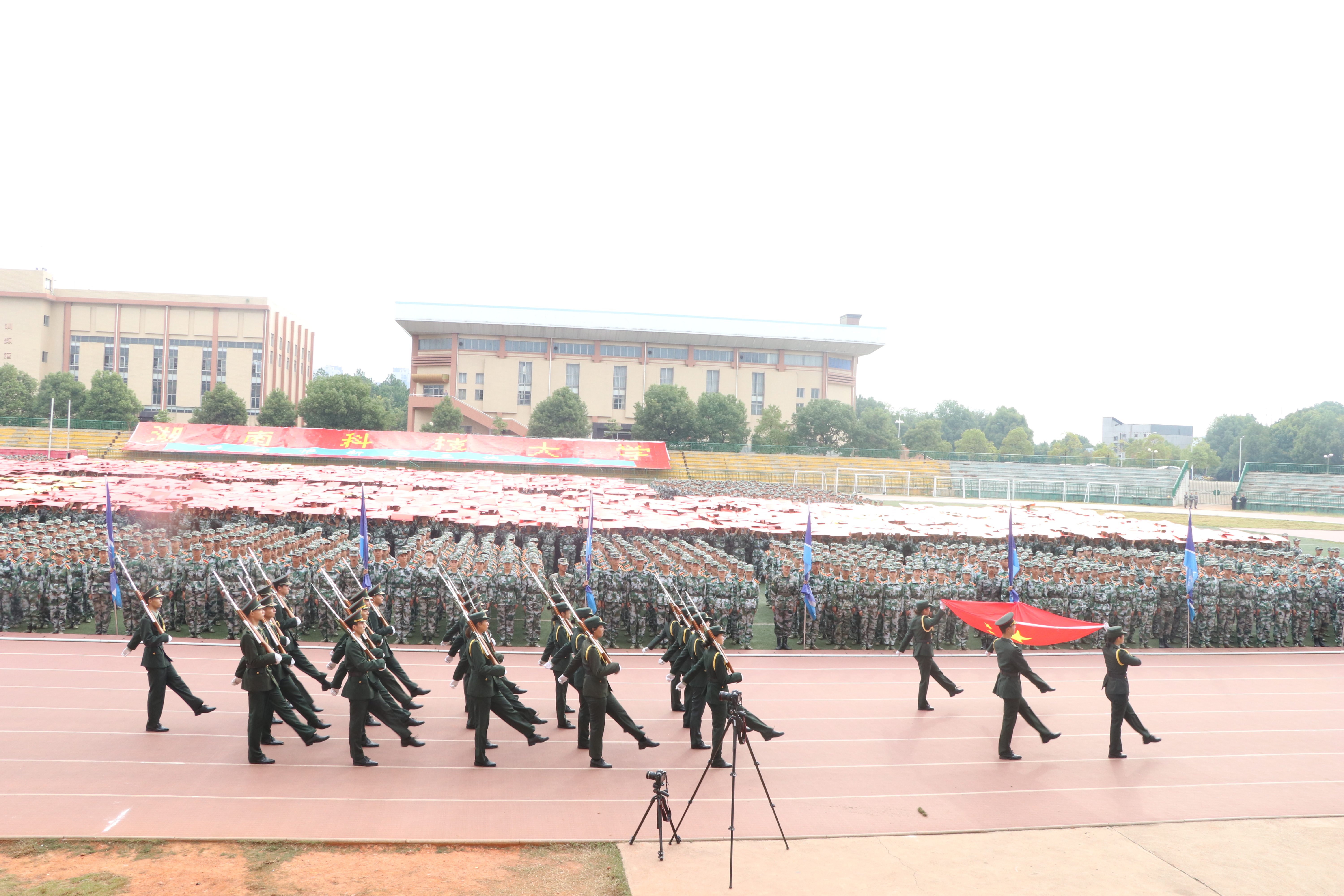 10月13日上午8:30,在北区田径场进行了2018级学生军训检阅暨总结表彰大会,到场的有校长李伯超,副校长胡石其、周飞跃、刘友金、廖湘岳,机关、直属单位负责人,各学院书记、院长、副书记,2018级学生辅导员、班主任以及全体学生。