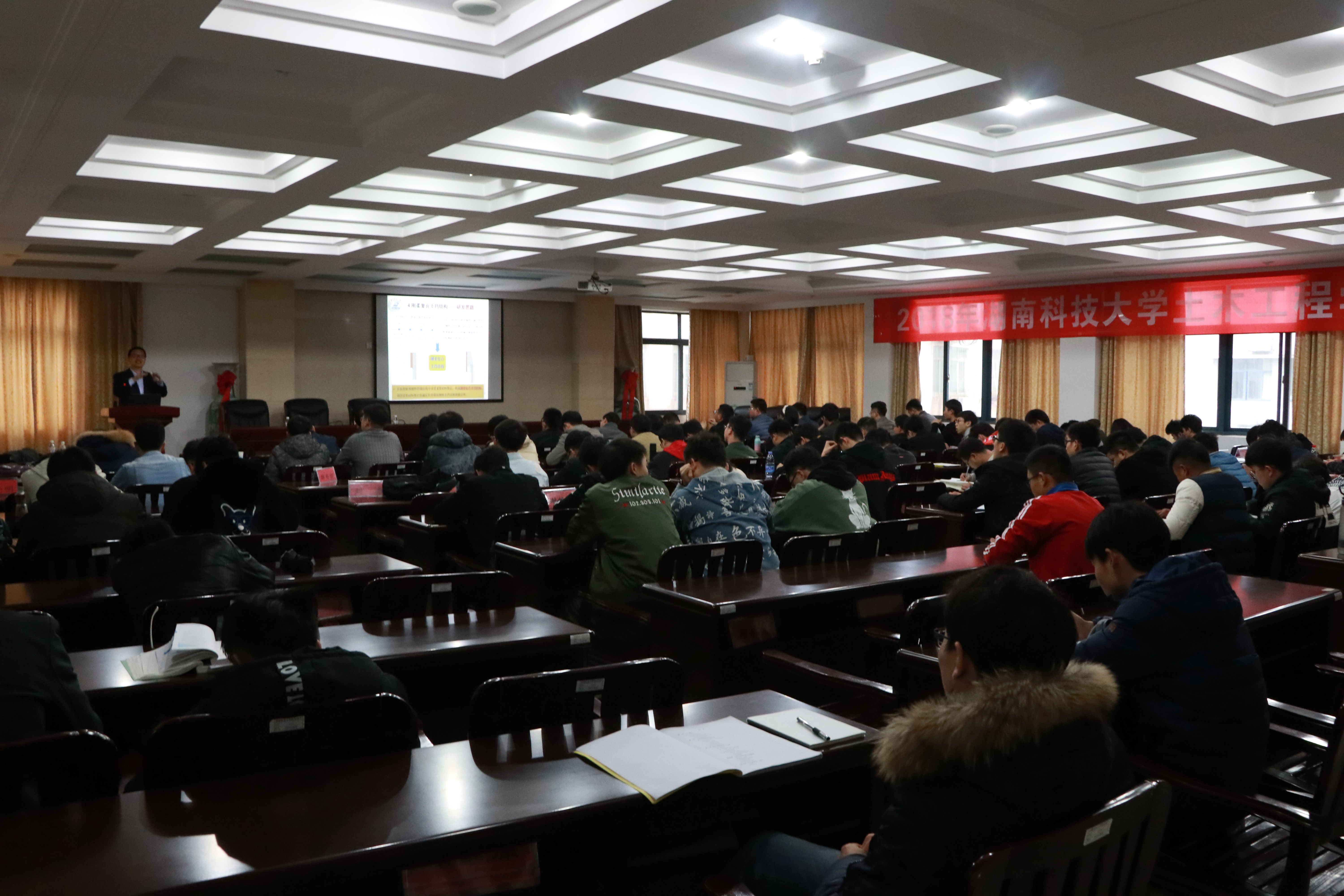 3月22日14:00,土木学术讲坛第151期于土木楼201顺利召开。主讲人为华中科技大学土木工程与力学学院副院长、中国岩石力学与工程学会理事、中国建筑学会地基基础分会常务理事、博士生导师郑俊杰教授。院党委书记陈秋南、院岩土工程系主任贺建清、胡伟教授、刘运思博士等相关专业的部分教师和学生参加此次讲坛。陈书记主持本次学术讲坛。