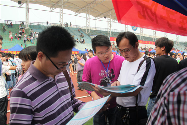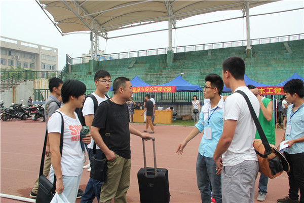 在迎新准备工作正在紧张有序地进行时,天空中下起了丝丝秋雨,正在服务台后等待注册的新生和家长在学院迎新领导小组的组织下,迅速进入体育馆看台躲雨。秋雨淅淅,却浇不灭新生和家长的热情,也浇不灭团委学生会干部成员尽职尽责为新生服务的信念。