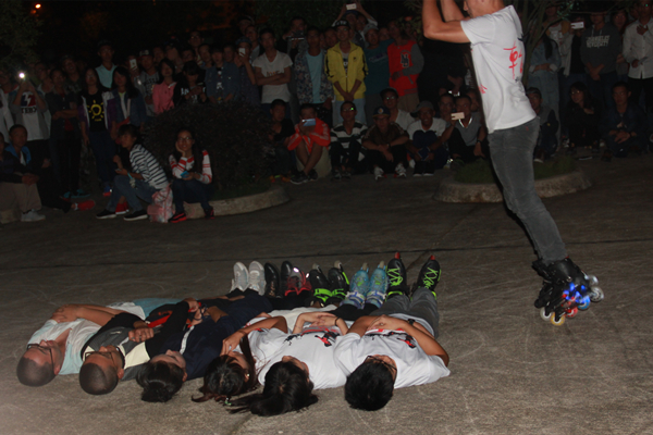 本次演出准备充分,音响灯光一应俱全,旨在为刻苦坚持训练的新生们提供一场视听盛宴。其中有龙吟棍社的成员们伴随节奏感十足的音乐耍着酷炫的双截棍,雄风跆拳道展示了其社员扎实的跆拳道功底,旱冰协会的闪光轮滑表演,文娱部的倾情表演,街舞社的劲爆街舞以及教官之间帅气的搏击更是将现场点燃。每到精彩的地方,同学们都将最热烈的欢呼和掌声送给表演者。