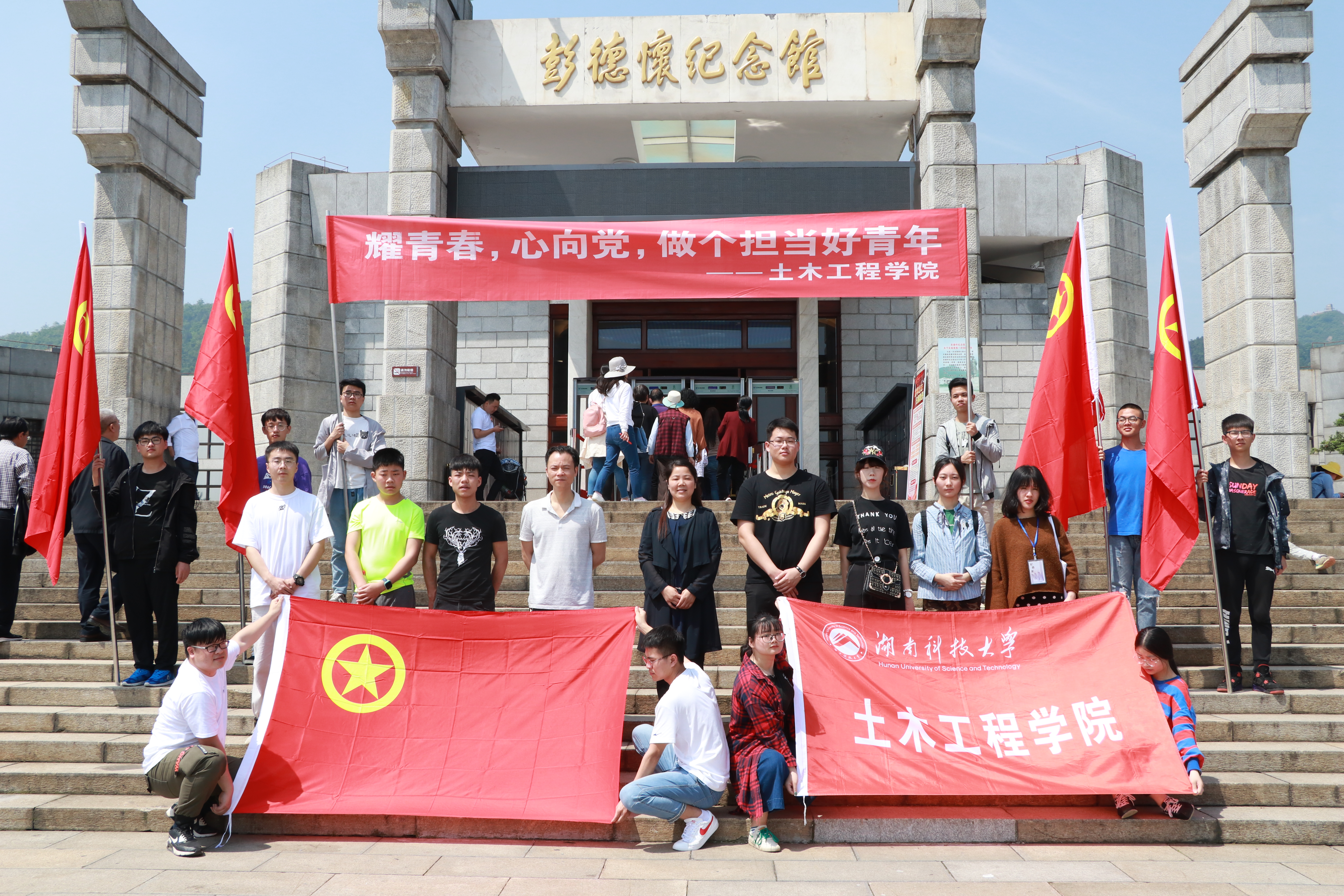 5月3日8:00,伟德官网党委副书记王艳、学工办主任虢利钢、学生会主要学生干部及部分学生代表从土木楼出发前往彭德怀同志故居,缅怀先烈。